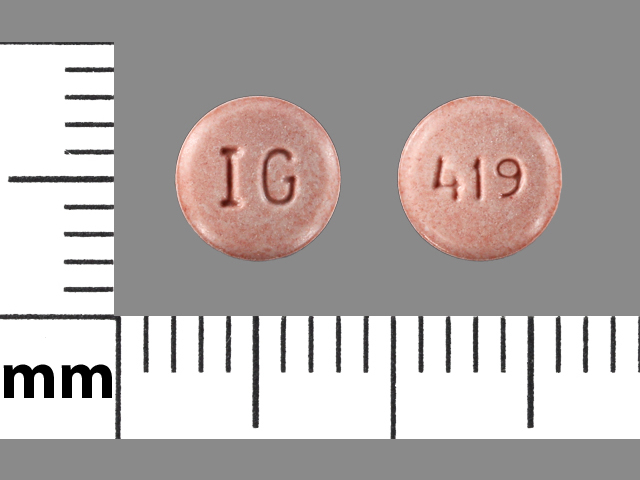 This medication is a Red Round 6 mm, Tablet with imprint "IG;419". It contains Lisinopril 10 mg; of Lisinopril[lisinopril anhydrous];. This belongs to the Angiotensin converting enzyme inhibitor pharmacologic class. It is manufactured by Exelan Pharmaceuticals Inc.. For details please contact your physician.