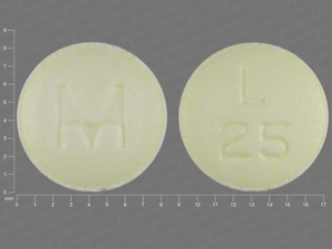 This medication is a Yellow Round 8 mm, Tablet with imprint "M;L;25". It is manufactured by Mylan Institutional Inc.. For details please contact your physician.