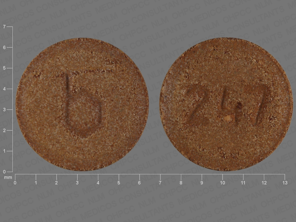 This medication is a Brown Round 6 mm, Tablet with imprint "b;247". It contains Ferrous fumarate 75 mg; of Ferrous fumarate[];. It is manufactured by Teva Women's Health, Inc.. For details please contact your physician.