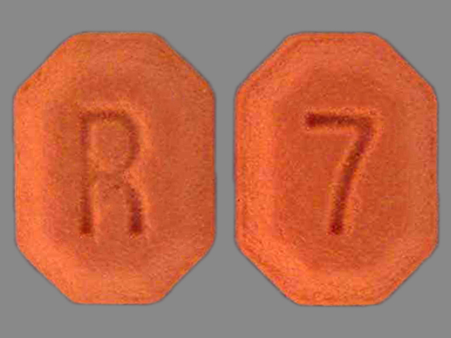 This medication is an Orange Octagon (8 sided) 8 mm, Film coated tablet with imprint "R;7". It is manufactured by Aventis Pharmaceuticals Inc.. For details please contact your physician.