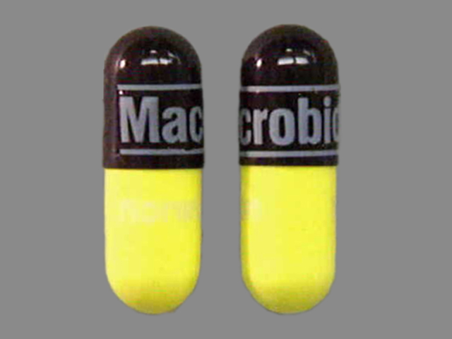 - MacrobidNITROFURANTOIN 25 mg;NITROFURANTOIN MONOHYDRATE 75 mg;YELLOW;BLACK • CAPSULE
