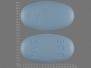 This medication is a Blue Oval 19 mm, Tablet with imprint "Pfizer;MVC;300". It contains 300 mg of Maraviroc 300 mg. It is manufactured by ViiV Healthcare Company. For details please contact your physician.