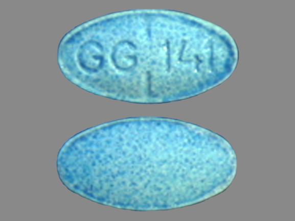 This medication is a Blue Oval 5 mm, Tablet with imprint "GG;141". It contains Meclizine hydrochloride 12.5 mg; of Meclizine hydrochloride[meclizine];. This belongs to the Antiemetic pharmacologic class. It is manufactured by Sandoz Inc. For details please contact your physician.
