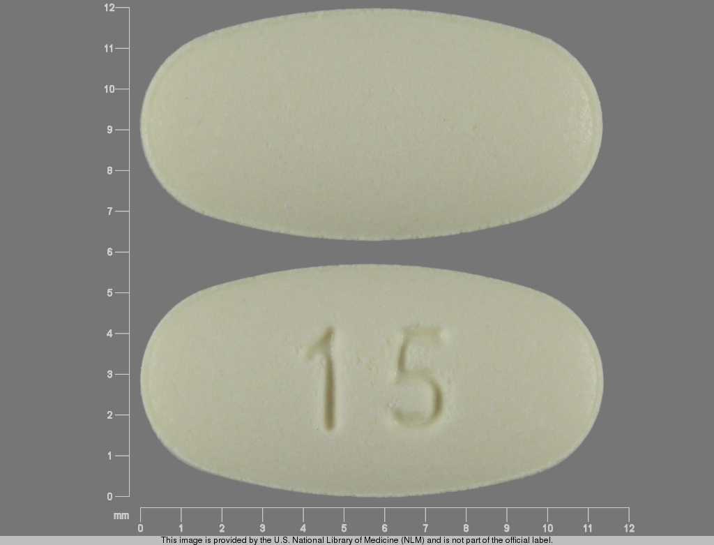 This medication is a Yellow Oval 11 mm, Tablet with imprint "15". It contains Meloxicam 15 mg; of Meloxicam[meloxicam];. This belongs to the Nonsteroidal anti-inflammatory drug pharmacologic class. It is manufactured by Lupin Pharmaceuticals, Inc.. For details please contact your physician.