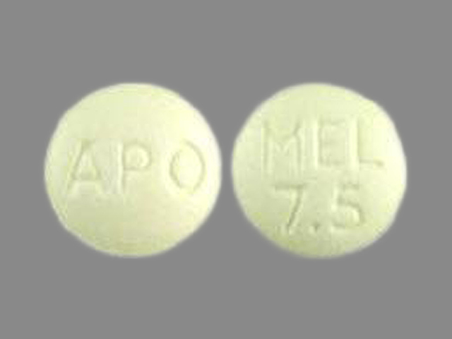 This medication is a Yellow Round 6 mm, Tablet with imprint "APO;MEL;7;5". It contains Meloxicam 7.5 mg; of Meloxicam[meloxicam];. This belongs to the Nonsteroidal anti-inflammatory drug pharmacologic class. It is manufactured by Apotex Corp.. For details please contact your physician.