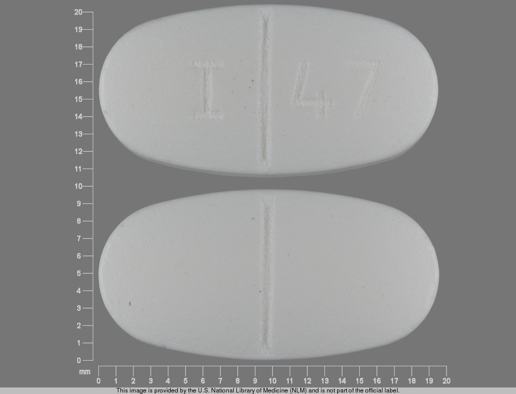 This medication is a White Oval 19 mm, Film coated tablet with imprint "I47". It contains Metformin hydrochloride 1000 mg; of Metformin hydrochloride[metformin];. This belongs to the Biguanide pharmacologic class. It is manufactured by Solco healthcare U.S., LLC. For details please contact your physician.