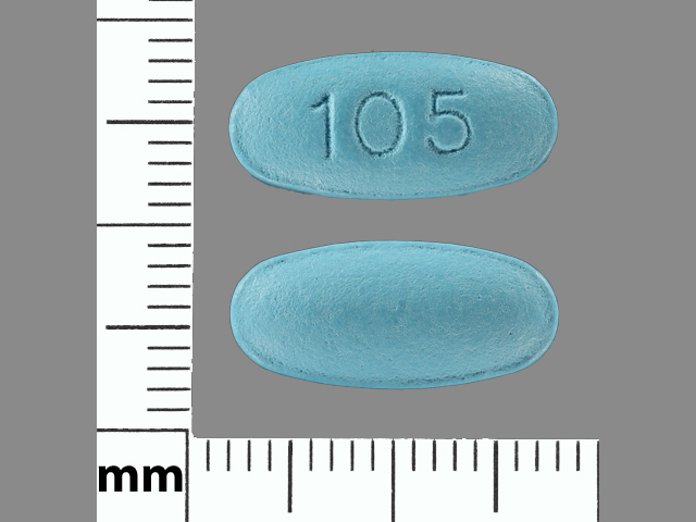 This medication is a Blue Oval 16 mm, Tablet with imprint "105". It contains Methenamine mandelate 500 mg; of Methenamine mandelate[methenamine];. It is manufactured by Edenbridge Pharmaceuticals LLC.. For details please contact your physician.