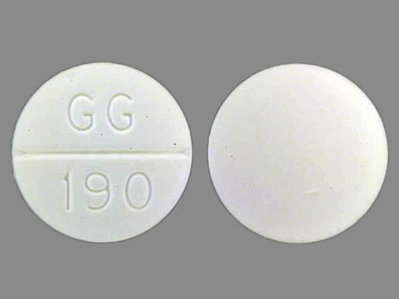 This medication is a White Round 13 mm, Tablet with imprint "GG190". It contains Methocarbamol 500 mg; of Methocarbamol[methocarbamol];. This belongs to the Muscle relaxant pharmacologic class. It is manufactured by Sandoz Inc. For details please contact your physician.