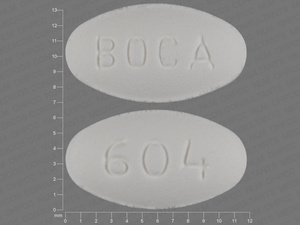 This medication is a White Oval 12 mm, Tablet with imprint "BOCA;604". It contains 5 mg of Methscopolamine bromide 5 mg. It is manufactured by Boca Pharmacal, Inc.. For details please contact your physician.