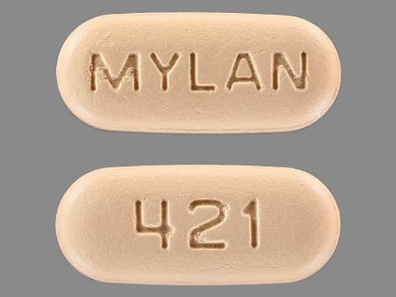 This medication is a Brown Oval 19 mm, Tablet with imprint "MYLAN;421". It contains Methyldopa 500 mg; of Methyldopa[methyldopa anhydrous];. This belongs to the Central alpha-2 adrenergic agonist pharmacologic class. It is manufactured by Mylan Pharmaceuticals Inc.. For details please contact your physician.