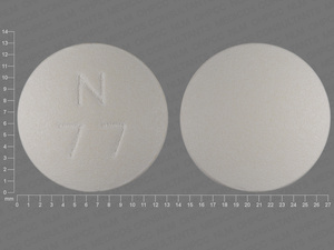 This medication is a White Round 13 mm, Tablet with imprint "N;77". It contains 500 mg of Methyldopa 500 mg. It is manufactured by Teva Pharmaceuticals USA Inc. For details please contact your physician.