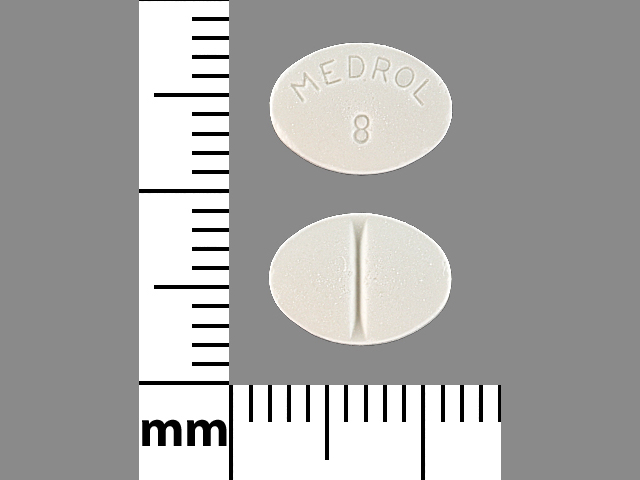 This medication is a White Oval 8 mm, Tablet with imprint "MEDROL;8". It contains Methylprednisolone 8 mg; of Methylprednisolone[methylprednisolone];. This belongs to the Corticosteroid pharmacologic class. It is manufactured by Greenstone LLC. For details please contact your physician.