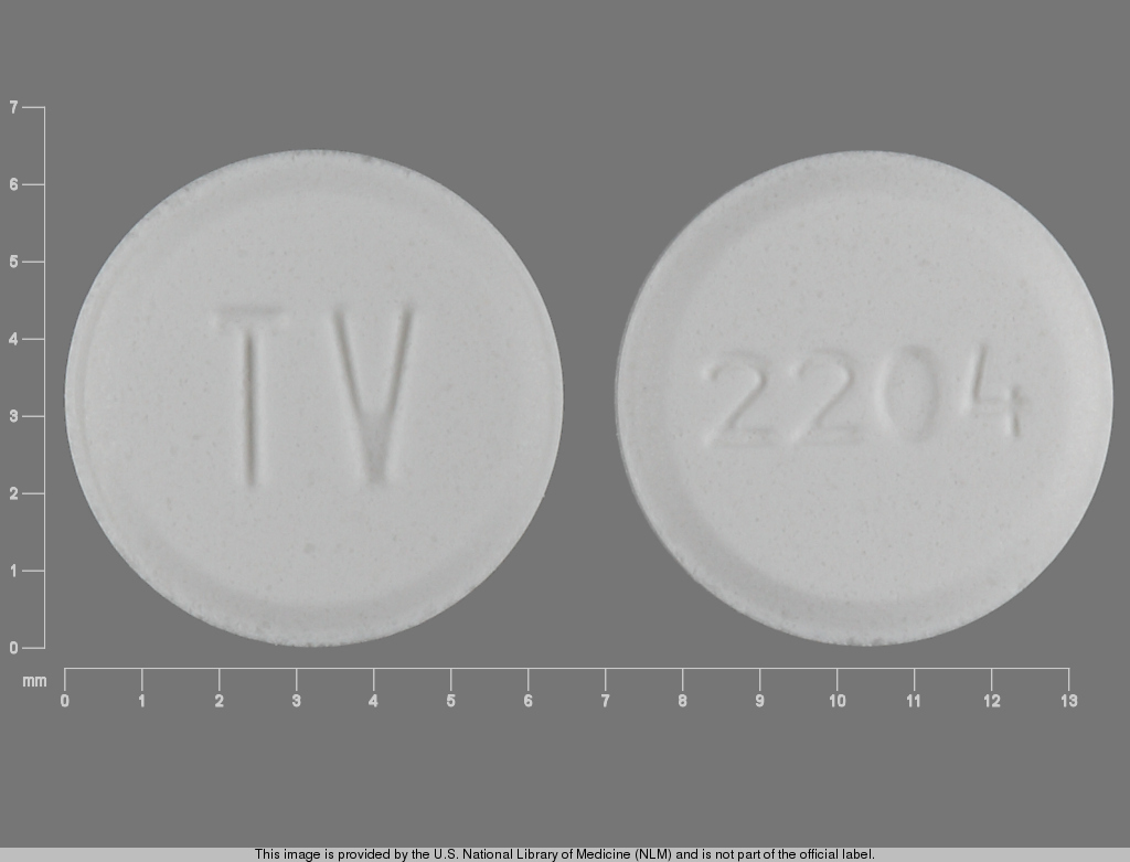 This medication is a White Round 6 mm, Tablet with imprint "TV;2204". It contains Metoclopramide hydrochloride 5 mg; of Metoclopramide hydrochloride[metoclopramide];. This belongs to the Dopamine-2 receptor antagonist pharmacologic class. It is manufactured by Teva Pharmaceuticals USA, Inc.. For details please contact your physician.