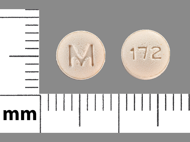 This medication is an Orange Round 6 mm, Tablet with imprint "M;172". It contains Metolazone 2.5 mg; of Metolazone[metolazone];. This belongs to the Thiazide-like diuretic pharmacologic class. It is manufactured by Mylan Institutional Inc.. For details please contact your physician.