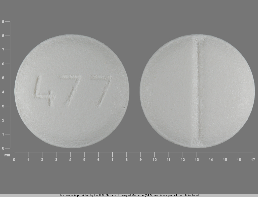 This medication is a White Round 8 mm, Tablet with imprint "477". It contains Metoprolol tartrate 50 mg; of Metoprolol tartrate[metoprolol];. This belongs to the Beta-adrenergic blocker pharmacologic class. It is manufactured by Caraco Pharmaceutical Laboratories, Ltd.. For details please contact your physician.