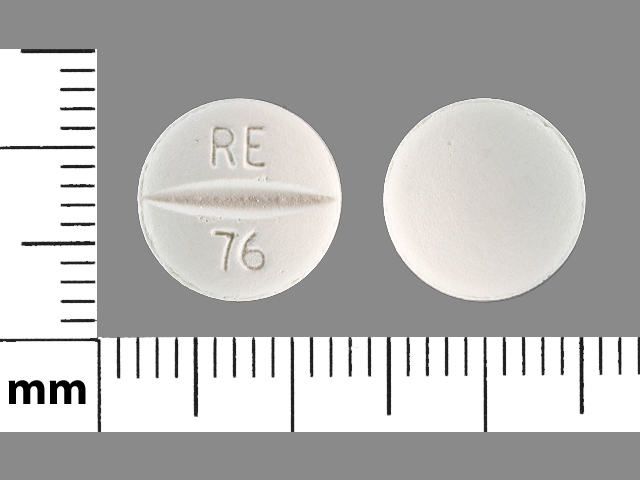 This medication is a White Round 10 mm, Film coated tablet with imprint "RE;76". It contains Metoprolol tartrate 100 mg; of Metoprolol tartrate[metoprolol];. This belongs to the Beta-adrenergic blocker pharmacologic class. It is manufactured by Ranbaxy Pharmaceuticals Inc.. For details please contact your physician.