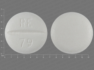 This medication is a White Round 7 mm, Tablet with imprint "RE;79". It contains 25 mg of Metoprolol tartrate 25 mg. It is manufactured by Ranbaxy Pharmaceuticals Inc.. For details please contact your physician.