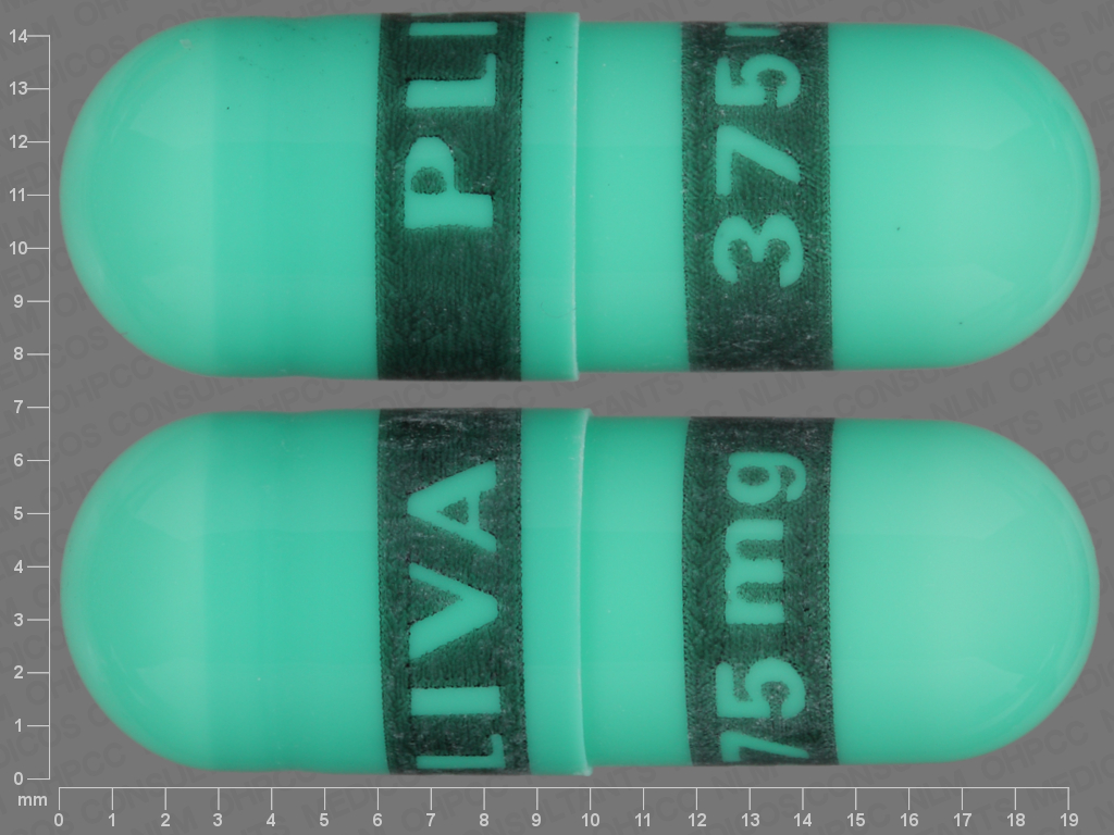 This medication is a Green, black Capsule 19 mm, Capsule with imprint "375;mg;PLIVA". It contains 375 mg of Metronidazole 375 mg. It is manufactured by Pliva Inc.. For details please contact your physician.