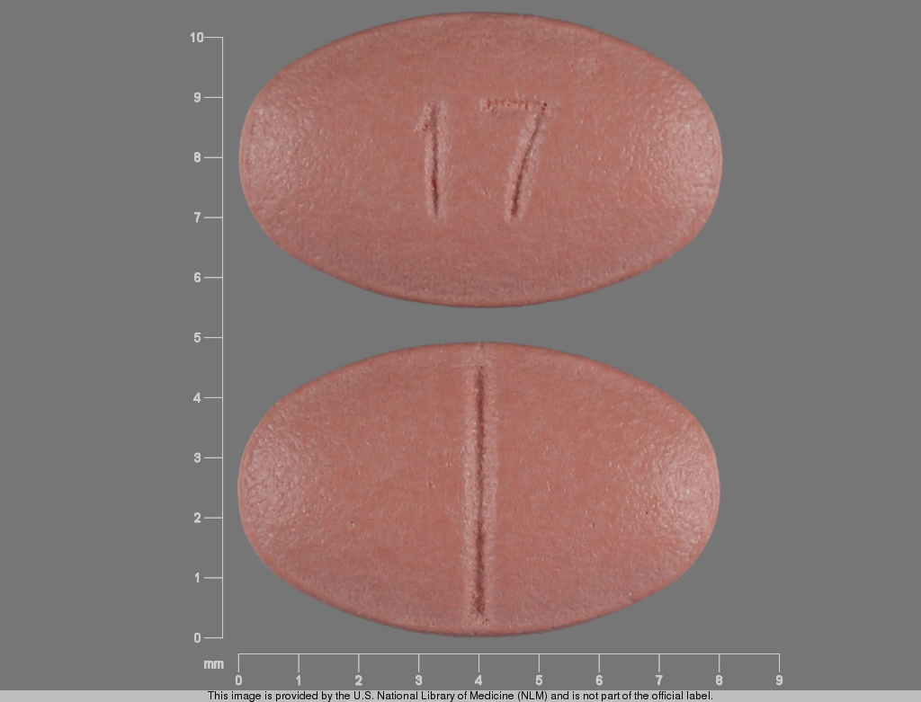 This medication is a Pink Oval 8 mm, Film coated tablet with imprint "17". It contains Moexipril hydrochloride 7.5 mg; of Moexipril hydrochloride[moexiprilat];. It is manufactured by Teva Pharmaceuticals USA, Inc.. For details please contact your physician.