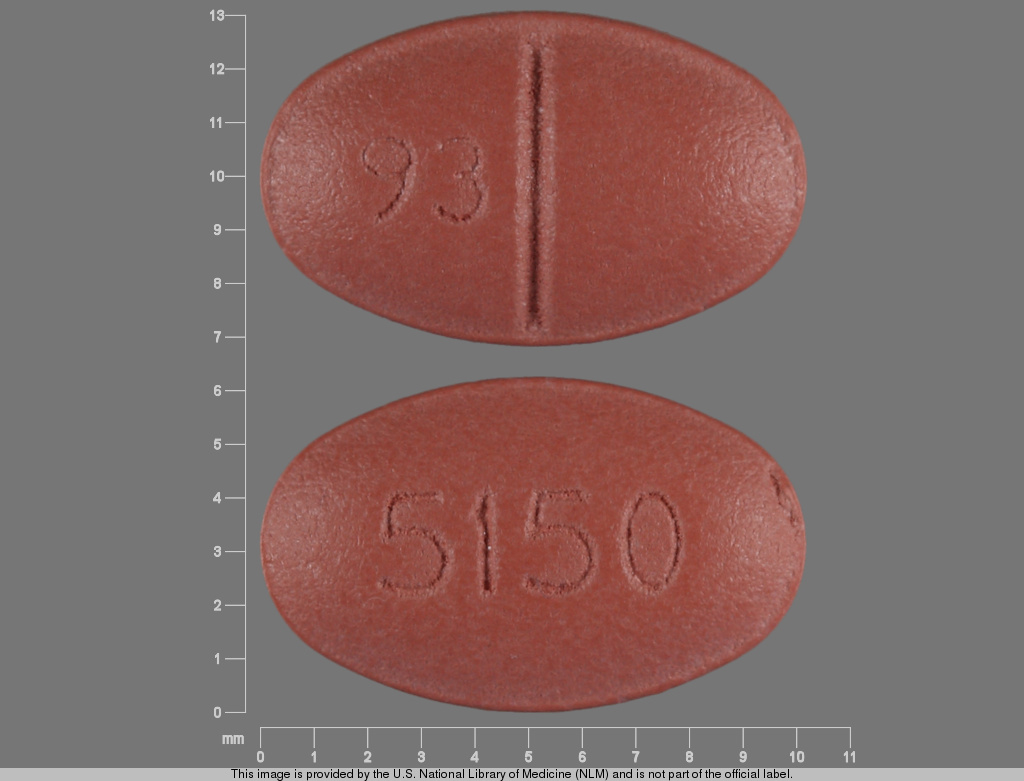 This medication is a Pink Oval 10 mm, Film coated tablet with imprint "5150;93". It contains Moexipril hydrochloride 15 mg; of Moexipril hydrochloride[moexiprilat];. It is manufactured by Teva Pharmaceuticals USA, Inc.. For details please contact your physician.