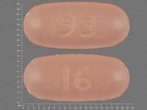 This medication is a Brown Oval 20 mm, Tablet with imprint "93;16". It contains 750 mg of Nabumetone 750 mg. It is manufactured by Teva Pharmaceuticals USA Inc. For details please contact your physician.
