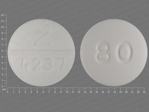 This medication is a White Round 11 mm, Tablet with imprint "80;Z;4237". It contains 80 mg of Nadolol 80 mg. It is manufactured by Teva Pharmaceuticals USA Inc. For details please contact your physician.