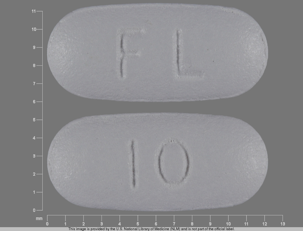 This medication is a Gray Oval 12 mm, Tablet with imprint "10;FL". It contains Memantine hydrochloride 10 mg; of Memantine hydrochloride[memantine];. This belongs to the N-methyl-d-aspartate receptor antagonist pharmacologic class. It is manufactured by Allergan, Inc.. For details please contact your physician.