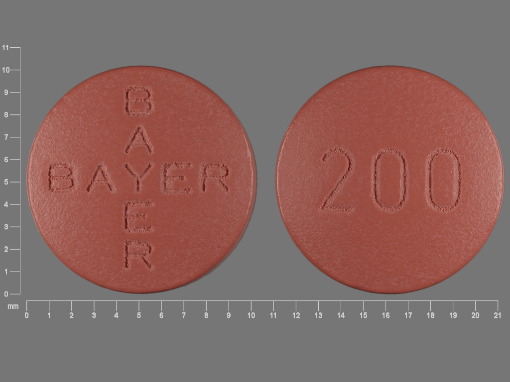 This medication is a Red Round 10 mm, Film coated tablet with imprint "200". It contains Sorafenib 200 mg; of Sorafenib[sorafenib];. This belongs to the Kinase inhibitor pharmacologic class. It is manufactured by Bayer HealthCare Pharmaceuticals Inc.. For details please contact your physician.
