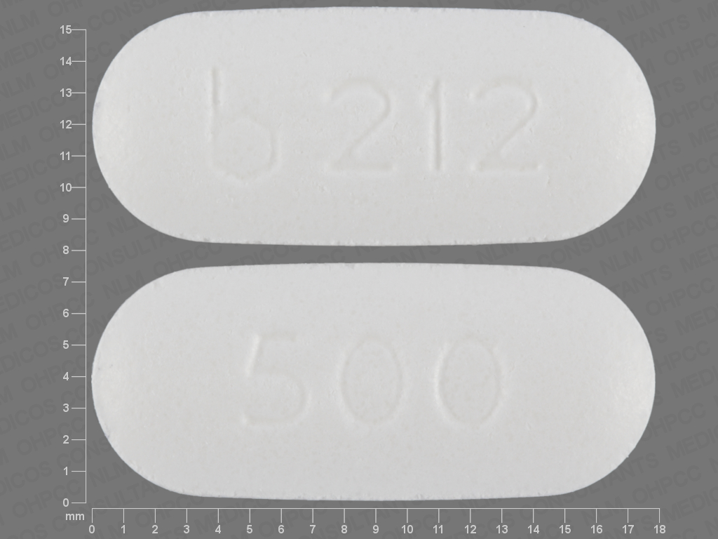 This medication is a White Oval 18 mm, Extended release tablet with imprint "b;212;500". It contains Niacin 500 mg; of Niacin[niacin];. This belongs to the Nicotinic acid pharmacologic class. It is manufactured by Teva Pharmaceuticals USA, Inc.. For details please contact your physician.