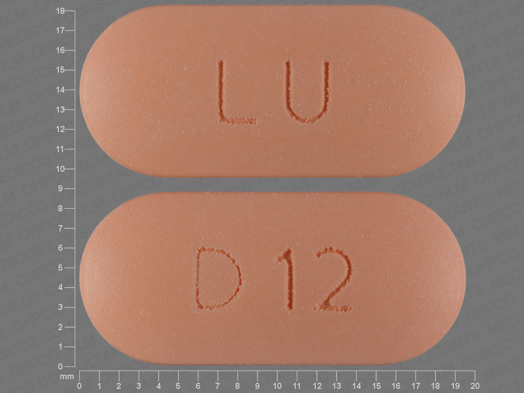 This medication is an Orange Oval 19 mm, Extended release tablet with imprint "LU;D;12". It is manufactured by Lupin Pharmaceuticals, Inc. For details please contact your physician.