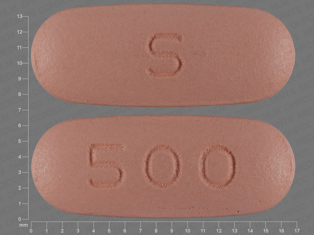 This medication is a Pink Oval 17 mm, Extended release tablet with imprint "S;500". It is manufactured by Sun Pharma Global FZE. For details please contact your physician.