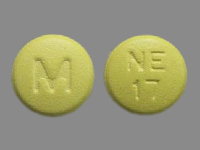 This medication is a Yellow Round 10 mm, Film coated extended release tablet with imprint "M;NE;17". It contains Nisoldipine 17 mg; of Nisoldipine[nisoldipine];. This belongs to the Dihydropyridine calcium channel blocker pharmacologic class. It is manufactured by Mylan Pharmaceuticals Inc.. For details please contact your physician.
