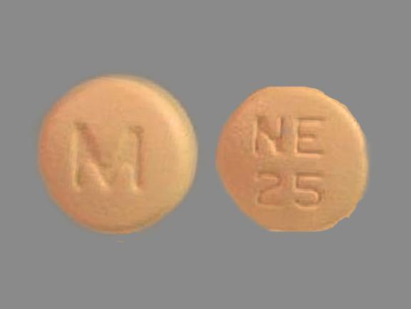 This medication is an Orange Round 10 mm, Film coated extended release tablet with imprint "M;NE;25". It contains Nisoldipine 25.5 mg; of Nisoldipine[nisoldipine];. This belongs to the Dihydropyridine calcium channel blocker pharmacologic class. It is manufactured by Mylan Pharmaceuticals Inc.. For details please contact your physician.