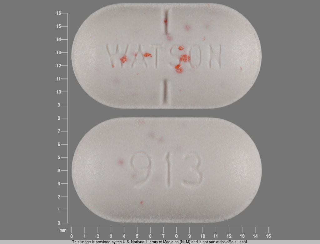 This medication is an Orange;white Capsule 14 mm, Tablet with imprint "WATSON;913". It contains Hydrocodone bitartrate 5 mg;acetaminophen 325 mg; of Hydrocodone bitartrate[hydrocodone];acetaminophen[acetaminophen];. This belongs to the Opioid agonist pharmacologic class. It is manufactured by Actavis Pharma, Inc.. For details please contact your physician.