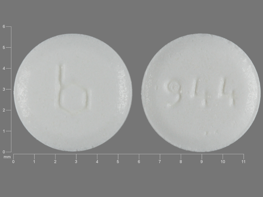 This medication is a White Round 6 mm, Tablet with imprint "b;944". It is manufactured by Teva Pharmaceuticals USA, Inc.. For details please contact your physician.