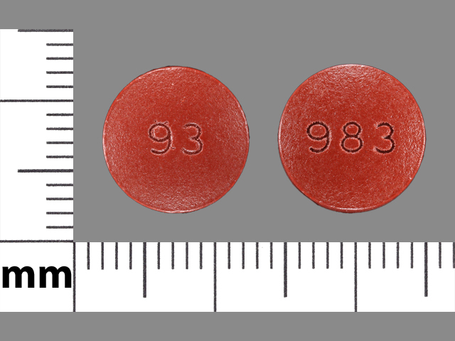 This medication is a Brown Round 10 mm, Film coated tablet with imprint "93;983". It contains Nystatin 500000 [USP'u]; of Nystatin[nystatin];. This belongs to the Polyene antifungal pharmacologic class. It is manufactured by AvKARE, Inc.. For details please contact your physician.