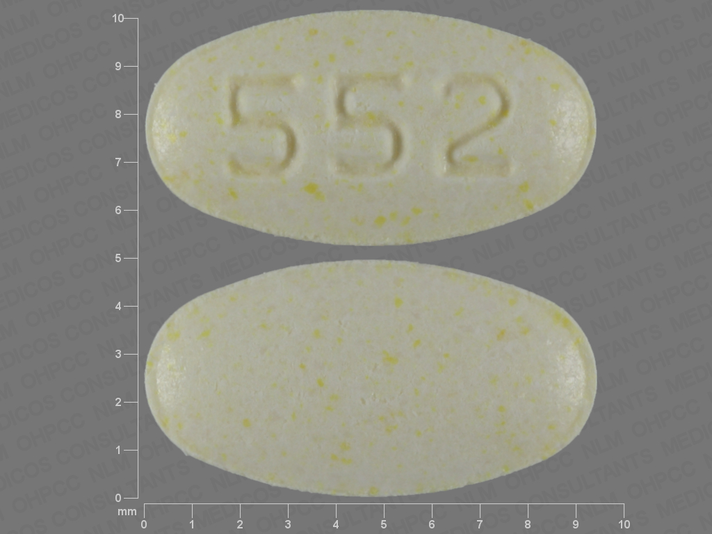 This medication is a Yellow Oval 9 mm, Tablet with imprint "552". It contains Olanzapine 5 mg; of Olanzapine[olanzapine];. This belongs to the Atypical antipsychotic pharmacologic class. It is manufactured by Sun Pharmaceutical Industries Limited. For details please contact your physician.