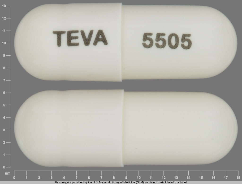 This medication is a White Capsule 18 mm, Capsule with imprint "TEVA;5505". It contains Olanzapine 6 mg;fluoxetine hydrochloride 50 mg; of Olanzapine[olanzapine];fluoxetine hydrochloride[fluoxetine];. It is manufactured by Teva Pharmaceuticals USA, Inc.. For details please contact your physician.