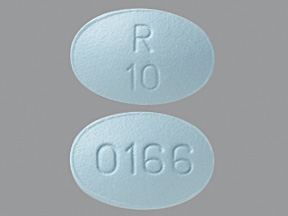 This medication is a Blue Oval 10 mm, Film coated tablet with imprint "R;10;0166". It contains Olanzapine 10 mg; of Olanzapine[olanzapine];. This belongs to the Atypical antipsychotic pharmacologic class. It is manufactured by American Health Packaging. For details please contact your physician.