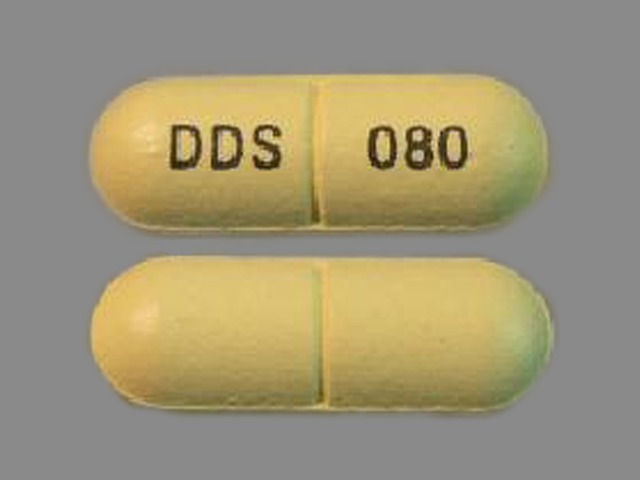 This medication is a Yellow Capsule 19 mm, Extended release tablet with imprint "DDS;080". It contains Trazodone hydrochloride 150 mg; of Trazodone hydrochloride[trazodone];. This belongs to the Serotonin reuptake inhibitor pharmacologic class. It is manufactured by Angelini Pharma Inc.. For details please contact your physician.