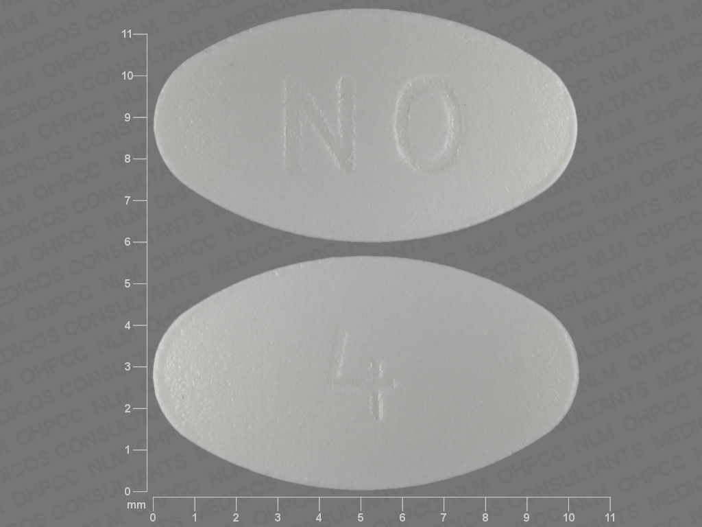This medication is a White Oval 10 mm, Film coated tablet with imprint "4;NO". It contains Ondansetron hydrochloride 4 mg; of Ondansetron hydrochloride[ondansetron];. This belongs to the Serotonin-3 receptor antagonist pharmacologic class. It is manufactured by Ascend Laboratories, LLC. For details please contact your physician.