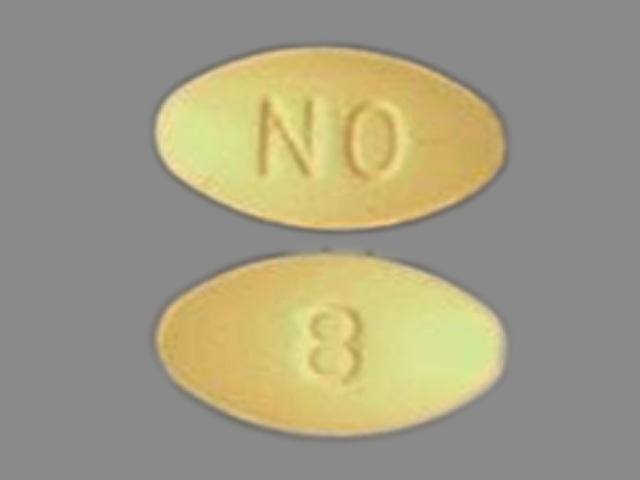 This medication is a Yellow Oval 12 mm, Film coated tablet with imprint "8;NO". It contains Ondansetron hydrochloride 8 mg; of Ondansetron hydrochloride[ondansetron];. This belongs to the Serotonin-3 receptor antagonist pharmacologic class. It is manufactured by Sun Pharmaceutical Industries, Inc.. For details please contact your physician.