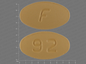 This medication is a Yellow Oval 8 mm, Tablet with imprint "F;92". It is manufactured by Aurobindo Pharma Limited. For details please contact your physician.