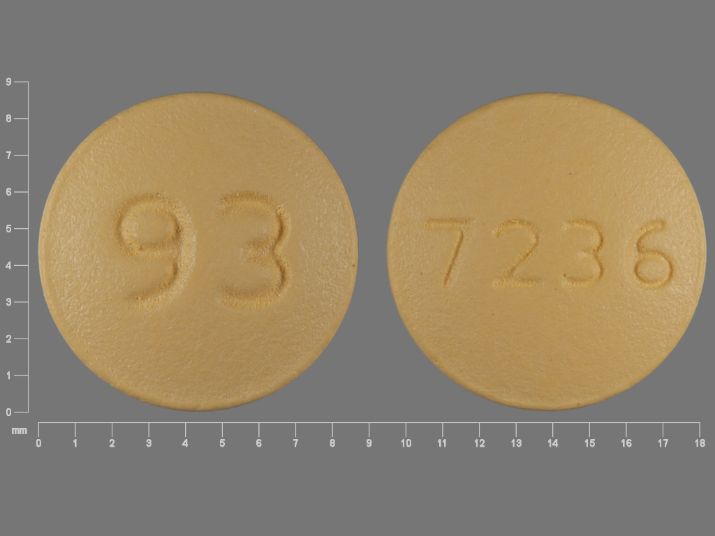 This medication is a Yellow Round 9 mm, Film coated tablet with imprint "93;7236". It contains Ondansetron hydrochloride 8 mg; of Ondansetron hydrochloride[ondansetron];. This belongs to the Serotonin-3 receptor antagonist pharmacologic class. It is manufactured by Teva Pharmaceuticals USA Inc. For details please contact your physician.