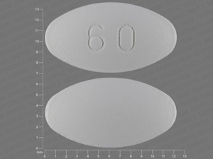 This medication is a White Oval 12 mm, Tablet with imprint "60". It is manufactured by Shionogi Inc. For details please contact your physician.
