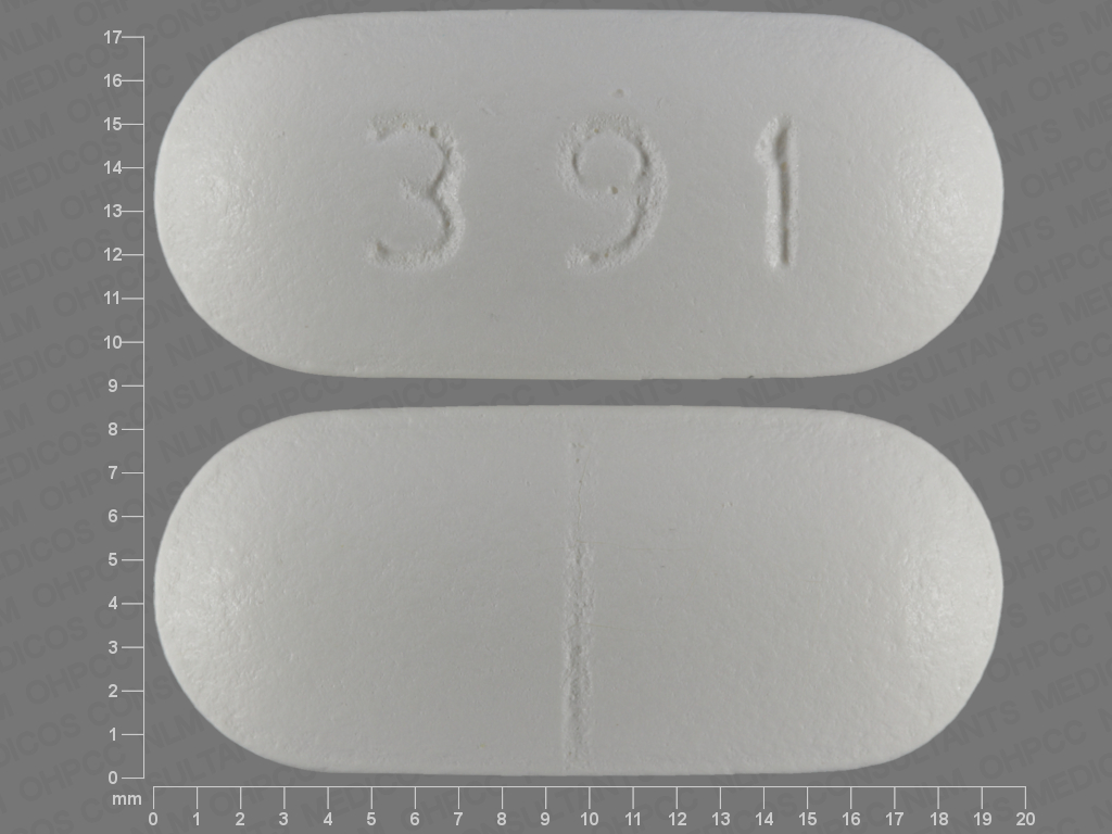 This medication is a White Oval 19 mm, Tablet with imprint "391". It contains Oxaprozin 600 mg; of Oxaprozin[oxaprozin];. This belongs to the Nonsteroidal anti-inflammatory drug pharmacologic class. It is manufactured by Caraco Pharmaceutical Laboratories, Ltd.. For details please contact your physician.