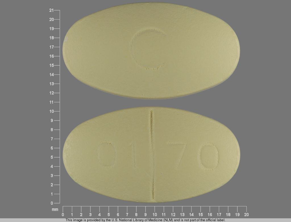 This medication is a Yellow Oval 19 mm, Film coated tablet with imprint "C;01;70". It contains Oxaprozin 600 mg; of Oxaprozin[oxaprozin];. This belongs to the Nonsteroidal anti-inflammatory drug pharmacologic class. It is manufactured by Dr. Reddy's Laboratories Limited. For details please contact your physician.