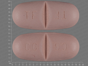 This medication is a Pink Oval 19 mm, Tablet with imprint "TF;TF;CG;CG". It contains 600 mg of Oxcarbazepine 600 mg. It is manufactured by Novartis Pharmaceuticals Corporation. For details please contact your physician.