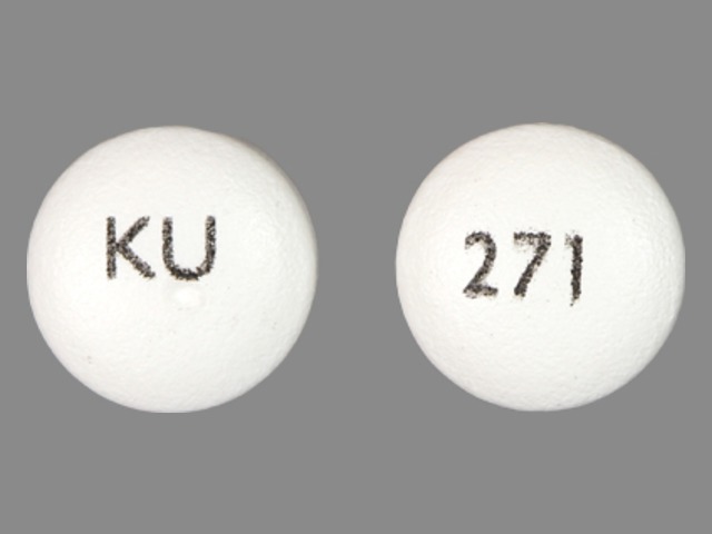 This medication is a White Round 8 mm, Film coated extended release tablet with imprint "271;KU". It contains Oxybutynin chloride 10 mg; of Oxybutynin chloride[oxybutynin];. This belongs to the Cholinergic muscarinic antagonist pharmacologic class. It is manufactured by Aphena Pharma Solutions - Tennessee, Inc.. For details please contact your physician.