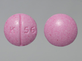 This medication is a Pink Round 6 mm, Tablet with imprint "K;56". It contains Oxycodone hydrochloride 10 mg; of Oxycodone hydrochloride[oxycodone];. This belongs to the Opioid agonist pharmacologic class. It is manufactured by American Health Packaging. For details please contact your physician.